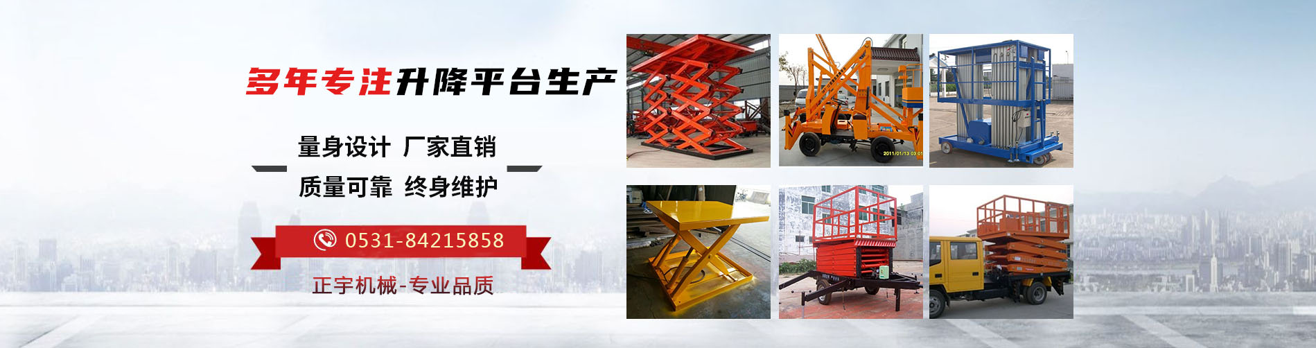 濟南正宇升降機械有限公司是一家集設計、研發(fā)、生產(chǎn)和銷售于一體的制造型企業(yè),生產(chǎn)液壓升降機械和高空作業(yè)平臺,公司處于素有泉城美稱的山東省濟南市,坐落于濟北開發(fā)區(qū)。優(yōu)越的地理位置和便利的交通給公司的發(fā)展帶來了充分的條件。正宇液壓技術力量厚,工藝流程先進合理,檢測手段齊全。目前主要產(chǎn)品有:高空作業(yè)平臺、登車橋、固定升降機、移動升降機以及鋁合金升降機等等。公司產(chǎn)品具有設計新穎、結構合理、升降平穩(wěn)、載重安全、操作簡單、維護方便等優(yōu)點。產(chǎn)品廣泛應用于各個行業(yè),如工礦企業(yè)、生產(chǎn)流水線、鐵路、機場、車站碼頭、貨物裝卸升舉、廠房工地、倉儲物流、高空設備安裝等場合。公司以誠信、創(chuàng)新、穩(wěn)健為宗旨,以品質(zhì)、完善服務的理念,迎接市場的挑戰(zhàn)。期待您的咨詢!